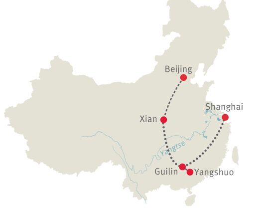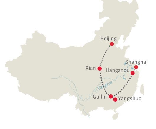 Lassen Sie sich von den unendlichen Facetten Chinas faszinieren: Beijing und die Grosse Mauer, die Terrakotta-Armee von Xian, die traumhafte Landschaft entlang des Li Flusses in Guilin und als Kontrast die futuristische Metropole Shanghai. Eine ideale Reise für «China-Einsteiger».