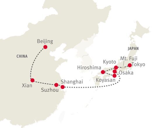 Auf dieser Gruppenreise erleben Sie den Spagat zwischen Tradition und Moderne hautnah und fühlen China und Japan auf den Zahn. Die wichtigsten Sehenswürdigkeiten sind Teil dieser Reise, es bleibt aber auch genügend Zeit für eigene Entdeckungen. Ein ideales Erlebnis für junge und unkomplizierte Entdecker, welche die Gesellschaft internationaler Mitreisenden schätzen.
