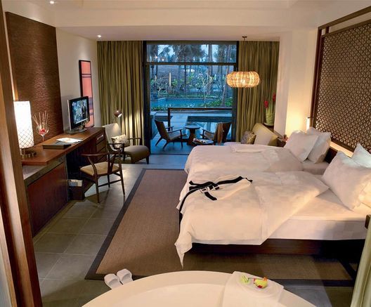 Die grosszügige, tropische Gartenanlage, der lange feinsandige Strand, die verschiedenen Restaurants und ein hervorragender Service machen das Haus zu einer der besten Adressen auf der Tropeninsel Hainan.