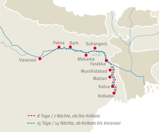 Flusskreuzfahrt ab/bis Kolkata oder Kolkata bis Varanasi