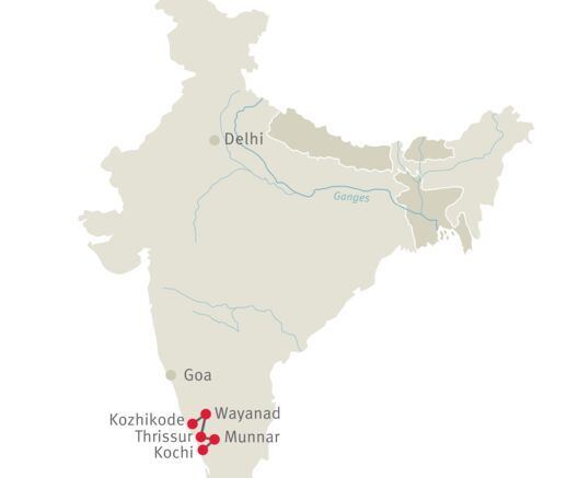 Von Nord nach Süd präsentiert Ihnen dieses Programm einen attraktiven Querschnitt der Vielfalt Keralas. Leicht abseits gängiger Routen reisen Sie von der Malabar-Küste in die Berge der Western Ghats und stossen dabei auf üppige Naturlandschaften und eine eigenständige Kultur.