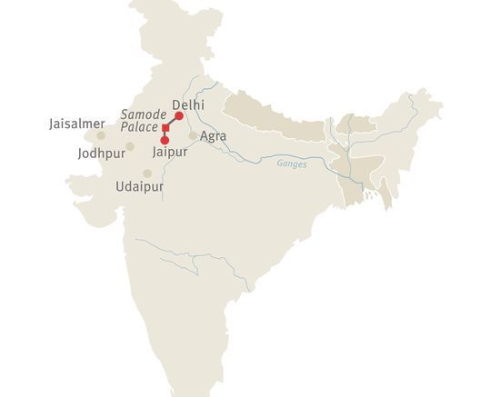 Im kleinen Dorf Samode, nur 42 km von Jaipur entfernt, werden Märchen wahr. Ein Aufenthalt im wunderschönen Samode Palace, ein über 400-jähriger Palast, ist ein aussergewöhnliches Erlebnis und bereichert jede Rajasthan-Reise. Lassen Sie sich von seiner Magie verzaubern.