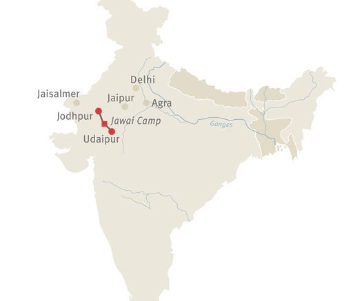 In der rauen, unberührten Landschaft im Süden Rajasthans liegt Jawai Bandh, ein Steppengebiet, aus dem uralte Granitfelsen ragen und das Heimat einer Leoparden-Population ist. Dieses Erlebnis lässt sich perfekt in jede Rajasthan-Rundreise zwischen Jodhpur und Udaipur einfügen.