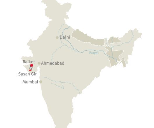 Sasan Gir, letztes Refugium des asiatischen Löwen! Dieser Nationalpark im Herzen des Bundesstaates Gujarat ist der einzige Ort, wo Sie diesen König der Tiere in freier Wildbahn sichten können.