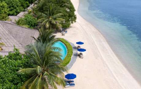 Ein paar Bungalows auf dem Strand und das Meer vor der Tür - pures Inselfeeling! Eine sanfte Hügellandschaft führt hinab über helle Sandkörner direkt in das tiefe Blau des Ozeans. Das romantische Resort bietet den perfekten Rahmen für ruhige Strandferien. Die vor der Türe liegende Unterwasserwelt ist phänomenal.