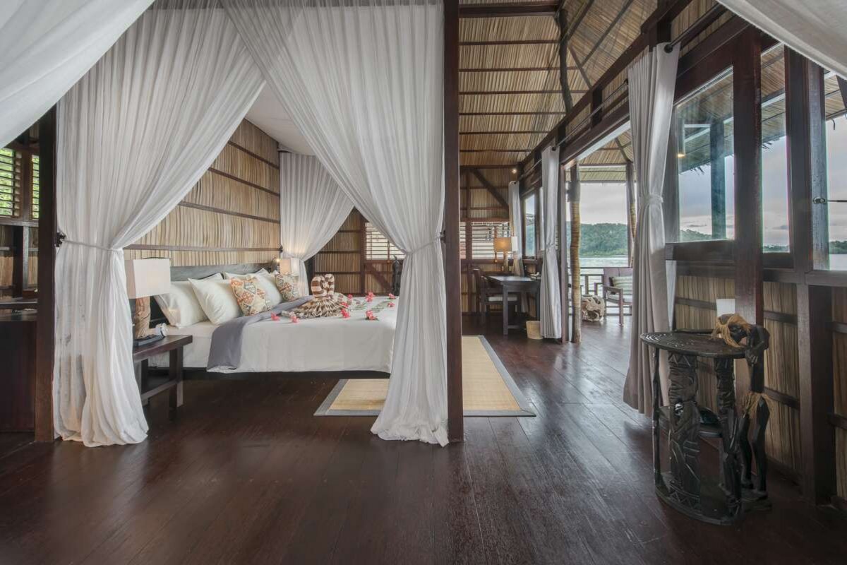 Die 26 Bungalows sind in lokaler Bauweise auf Stelzen zwischen Dschungel und Riff entlang der Küstenlinie gebaut und bieten dadurch einen wunderbaren Blick über das Meer. Superior (70m²), ausgestattet mit Moskitonetzen und Ventilator sowie grosser Veranda mit Sonnenliegen und Hängematte bieten einen direkten Blick auf das Riff. Deluxe sind geräumiger mit Wohnbereich, halboffenem Badezimmer und Tagesbett auf der Terrasse.