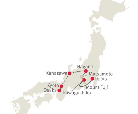 Eine ideale Reise für Japan-Einsteiger oder für Gäste, die in möglichst kurzer Zeit die Höhepunkte zwischen Tokyo und Kyoto erleben möchten. Sie bereisen das eindrückliche Land begleitet von einer Deutsch sprechenden Reiseleitung und mit öffentlichen Verkehrsmitteln.