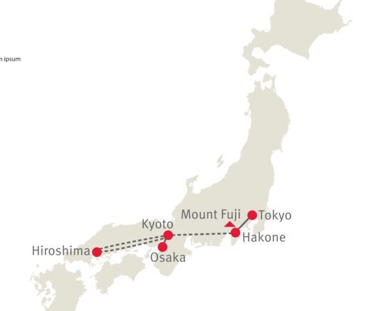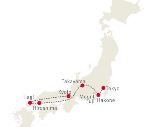 In neun Tagen sehen Sie die wichtigsten Orte dieses unglaublichen Landes. Tokyo, die pulsierende Metropole, Kyoto mit seiner fesselnden Geschichte und Hiroshima mit seiner traurigen Vergangenheit. Dies sind nur einige Destinationen dieser spannenden Reise.