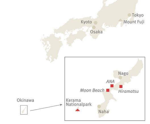 Die Inselgruppe Okinawa umfasst 160 Inseln, die sich wie eine Perlen-Schnur rund 700km südlich von Kyushu Richtung Taiwan aufreihen. Die Mehrzahl ist klein und unbewohnt, die Grösseren sind für ihre subtropische Ferien-Umgebung berühmt. Türkis schimmerndes Meer, Natur pur in Nationalparks und eine spannende Vergangenheit locken auch Entdecker-Herzen an.