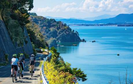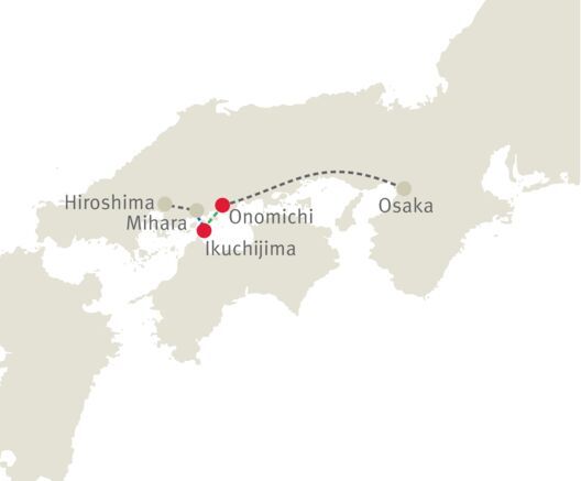 Unterwegs auf Japans berühmtester Fahrradroute überqueren Sie imposante Brücken und geniessen die fantastische Meer-Landschaft der Seto-Binnensee. Ein Erlebnis abseits der Massen.