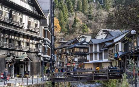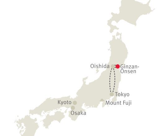 Ein sich verengendes Tal mit einem tosenden Wasserfall am Ende, dies ist die Kulisse für eines der romantischsten Onsen-Dörfer Japans; Ginzan-Onsen. Die Hektik Tokyos ist weit weg und in der wunderbaren Umgebung lässt es sich bestens abschalten.