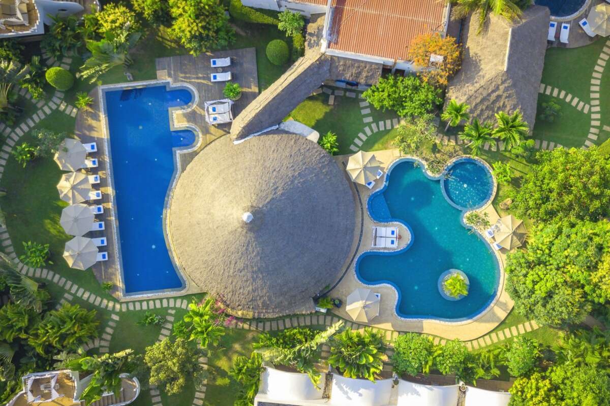 3 Pools, Restaurant und schönes Wellnesszentrum – alles ganz nach ökologischem Grundkonzept. Fitness.