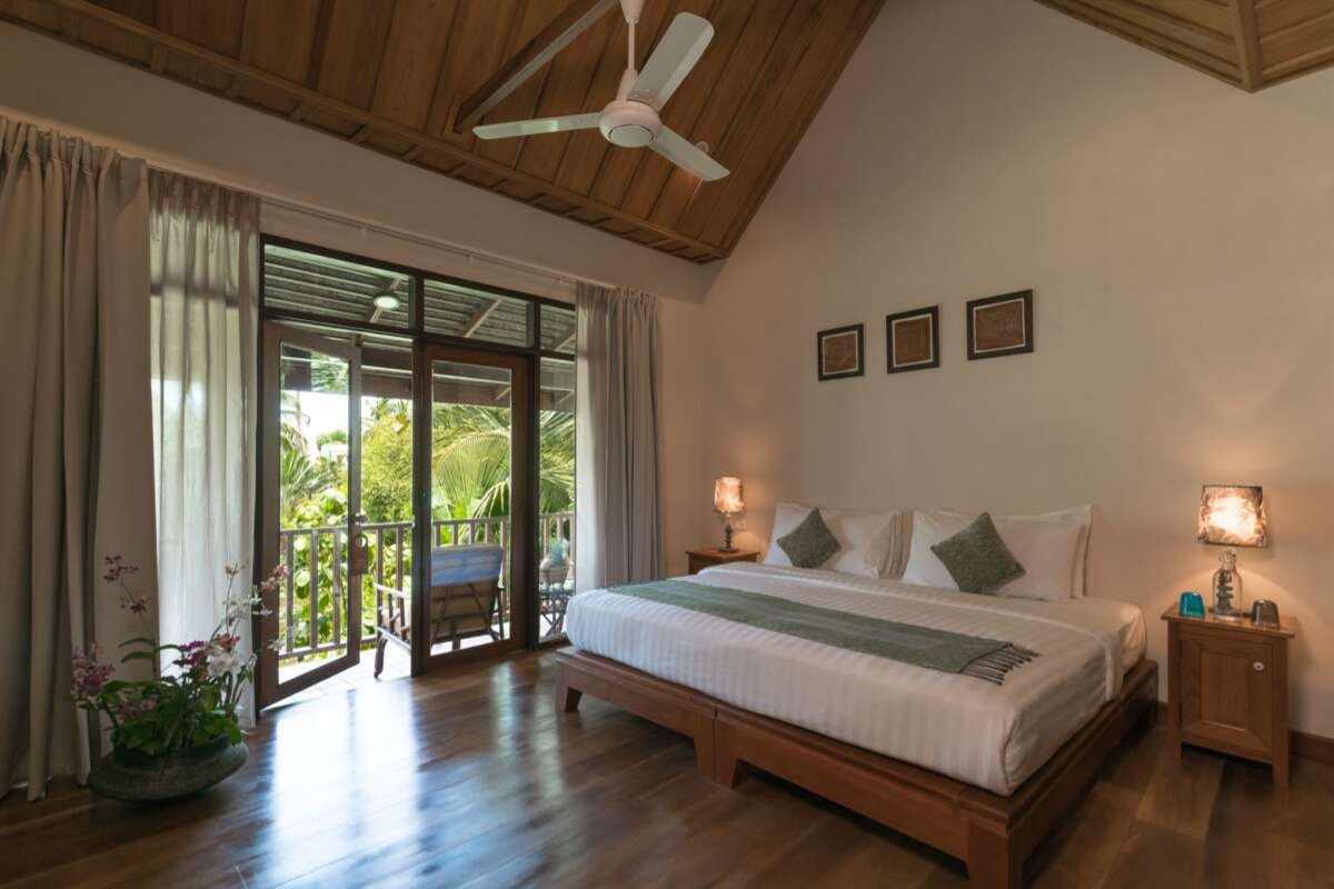 40 im traditionell laotischen Stil eingerichtete Zimmer mit allen Annehmlichkeiten. Deluxe sind 34m² gross und bieten eine Terrasse resp. Balkon mit Blick in den traumhaften Garten. Grand Deluxe sind im moderneren laotischen Stil gestaltet.