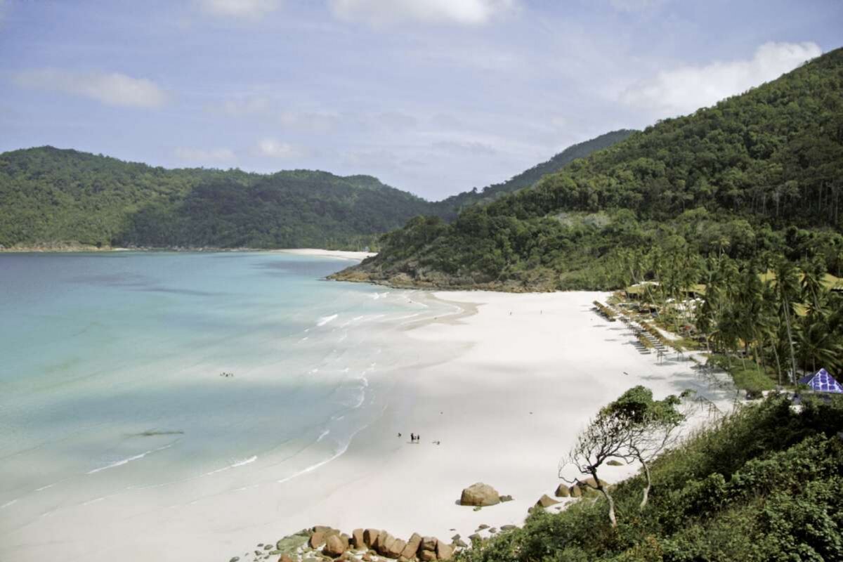 Am weissen Puderzucker-Strand. Die Überfahrt mit der Fähre vom Festland dauert etwa 1 Stunde. Weitere 40 Minuten sind es vom Flughafen Terengganu. Die Unterhaltungsmöglichkeiten beschränken sich auf die Hotelanlage.