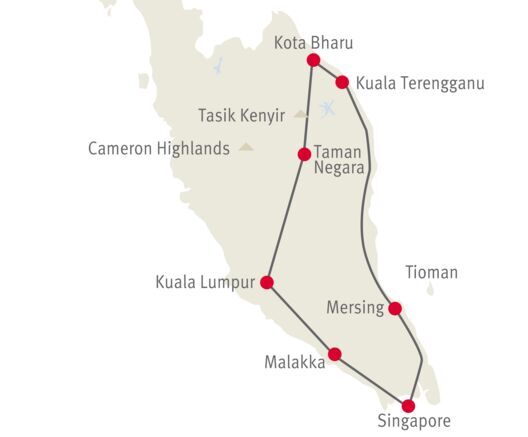 Entdecken Sie im Mietwagen die perfekte Mischung, die Malaysia ausmacht; spannende Städte, beeindruckende Natur und traumhafte Strände. Wir empfehlen diese Route von März bis Oktober.