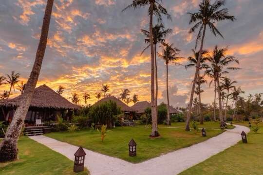 An einem strahlend weissen Traumstrand im Südosten der Insel Siargao, umgeben von uralten Mangrovenwäldern, Kokospalmen und Korallenriffen. Der Flug von Cebu dauert 60, der Transfer vom Flughafen rund 40 Minuten.