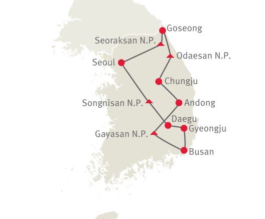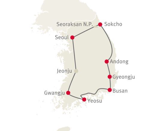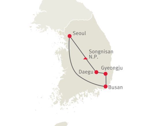 In 11 Tagen sehen Sie die klassischen Sehenswürdigkeiten zwischen Seoul und Busan, übernachten in einer Tempelunterkunft und erleben die spektakuläre Natur des Seoraksan-Nationalparks.