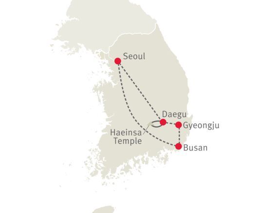 Die Halbinsel zwischen Japan, China und dem isolierten Bruderstaat im Norden ist im Trend. Das homogene, konfuzianisch geprägte Land ist auf dem Weg an die Weltspitze. Trotz Hightech und Wirtschaftswunder überrascht es aber mit einem unglaublich starken Wir-Gefühl, Solidarität und Werten. Obwohl Korea religiöse Strömungen und Traditionen aus ganz Asien aufgenommen hat, entwickelte es eine ganz eigene, ausgeprägte Kultur mit grossartigen Kulturschätzen. Als Besucher ist man überwältigt von der Gastfreundschaft und Liebenswürdigkeit der Menschen, trotz hoher Sprachbarriere und gewaltiger kultureller Unterschiede. Samsung, Hyundai oder Ginseng, K-Pop und Gangnam Style kennt heute jeder, irgendwie. Entdecken Sie den Ursprung und lassen Sie sich ein auf eine spannende Destination voller Kontraste.