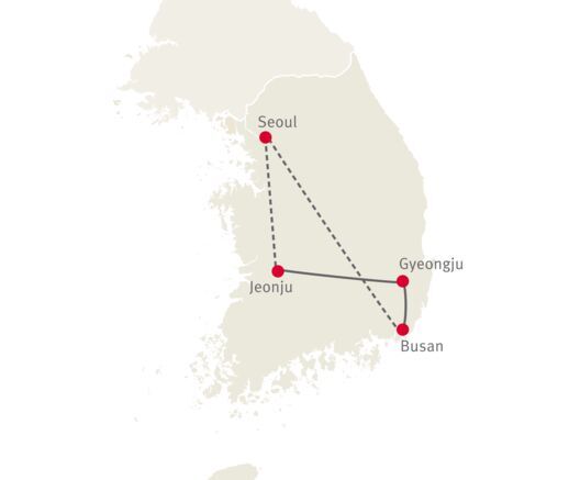 Entdecken Sie das Land der Morgenstille auf unabhängige Art. Unterwegs per Zug reisen Sie am Puls des Landes und geniessen Freizeit für individuelle Erkundungen. Bei den Hauptattraktionen steht Ihnen unsere kompetente Reiseleitung zur Seite.