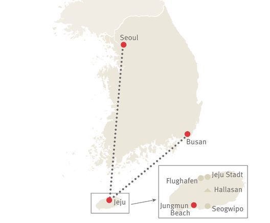Schon in alten Zeiten waren Seefahrer beeindruckt von der majestätischen Kontur der Insel Jeju mit dem alles überragenden Vulkanberg Hallasan. Die Anziehungskraft ist ungebrochen und lockt zahlreiche Besucher an, die sich vom Anblick der subtropischen Vegetation, zerklüfteten Steilküsten, Sandstränden und Lavahöhlen begeistern lassen.