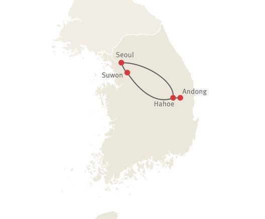 Tauchen Sie ein in das ländliche Korea geprägt von bäuerlichem Brauchtum und ruhiger Umgebung. Die Bevölkerung ist stolz auf ihre Traditionen, die in den Lehren des Konfuzius wurzeln. Dörfer mit liebevoll gepflegten traditionellen Hanok-Häusern bestimmen das Bild. Der Kontrast zum futuristischen Seoul könnte grösser nicht sein!