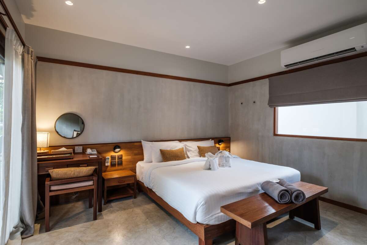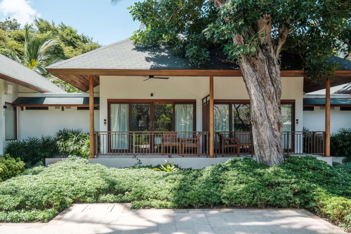 Die 79 Zimmer verteilen sich in eine wunderschön tropische Gartenanlage und ziehen sich von der Reception bis zum Strand. Eine effiziente Kombination von Beton und Holz sowie einladende Aussenbereiche zum Verweilen. Standard sind 33m² gross und befinden sich in 1-stöckigen Gebäuden im hinteren Bereich des Resorts. Deluxe sind zusammen gebaute Bungalows und etwas grösser. Premium sind mit 44m² nochmal grösser und mit schönem Blick ins Grüne.
