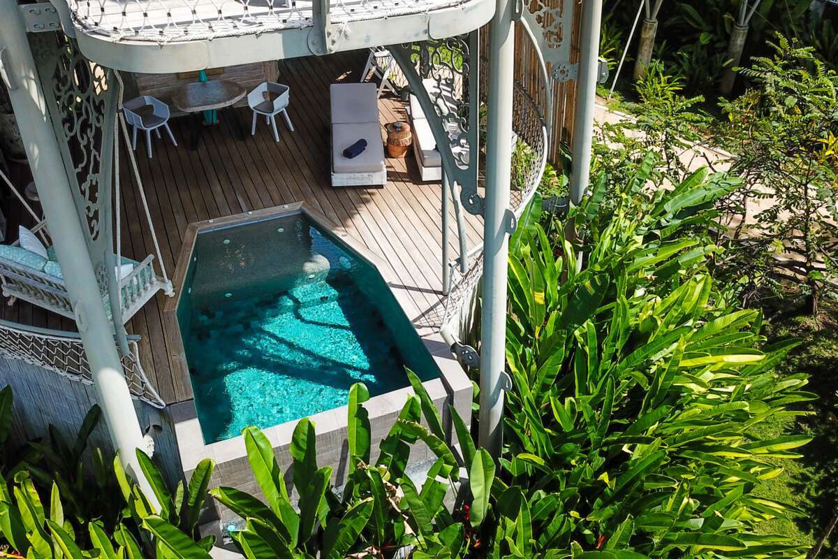 Die 31 einzigartigen Baumhäuser und Strandvillen sind harmonisch in die tropische Natur eingebettet. Über eine Hängebrücke gelangen Sie zu Ihrem zweistöckigen, insgesamt 100m² grossen Tree House. Unten erwartet Sie ein offener Wohnbereich mit privatem Plunge Pool, Hängematte und Lounge. Über eine Aussentreppe erreichen Sie das klimatisierte Schlafzimmer mit Panoramafenstern und Badezimmer. Wer das Meer direkt vor der Tür bevorzugt, wählt eine der ebenerdigen und stilvollen Beachfront Pool Villas (110m²) mit Infinity-Pool und direktem Zugang zum Strand.