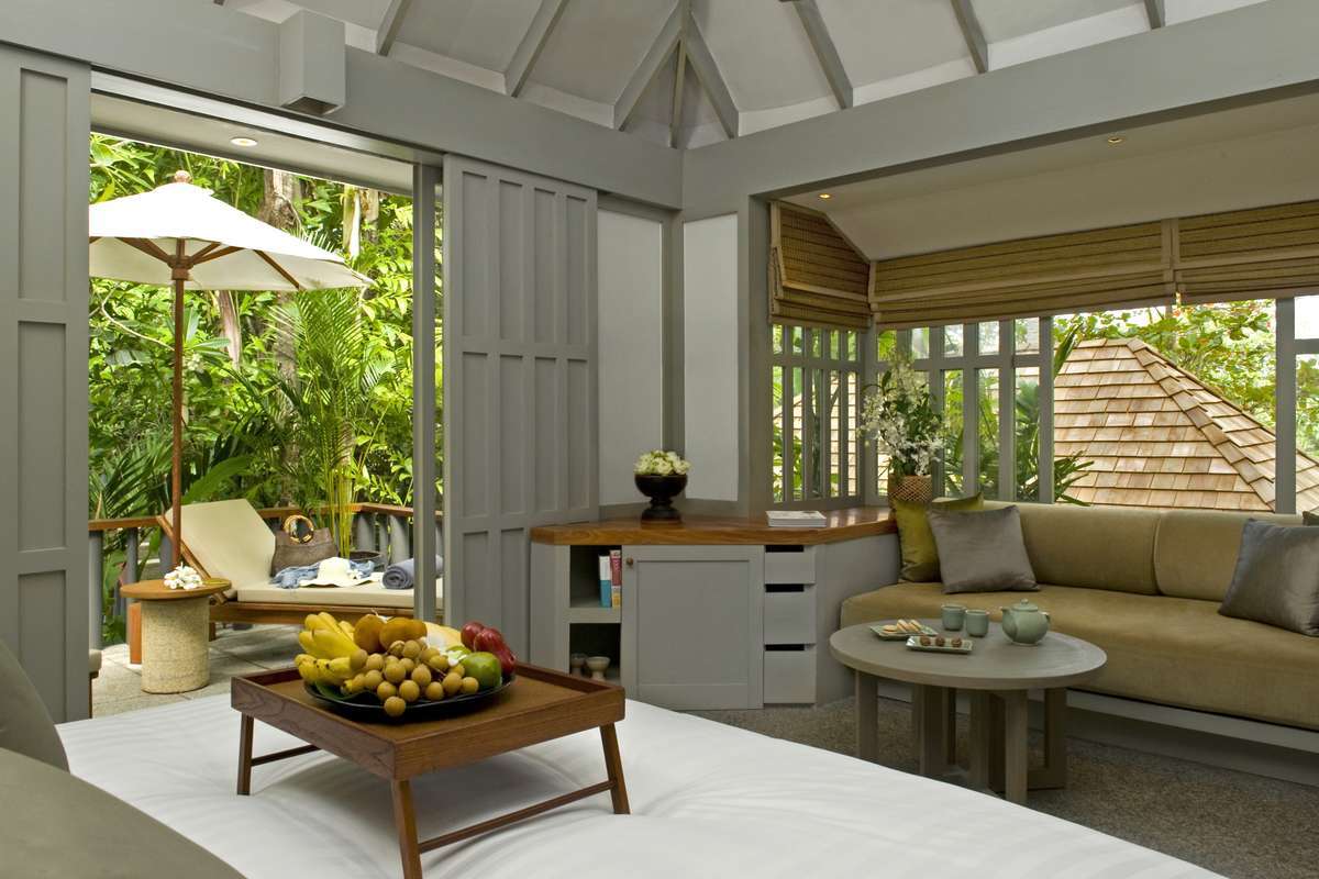 109 alleinstehende, schlichte, aber stilvolle Cottages mit einem oder zwei Schlafzimmern. Die Cottages unterscheiden sich vor allem durch die Lage: Hillside an oberster Hanglage; Superior etwas weiter unten; Deluxe in 2. und 3. Reihe zum Meer; Beach Deluxe Suiten direkt am Strand und mit zusätzlichem Wohnraum. Luxuriöse Pool Villen mit separatem Wohn- und Schlafbereich, einladendem Aussenbereich und einem kleinen Pool.