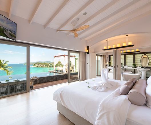 Sie treten ein und werden überwältigt sein. Vor Ihnen das tiefblaue Meer, ein Pool von Palmen umsäumt und Suiten und Villen, die keine Wünsche offen lassen. Schöner können Ferien nicht sein.