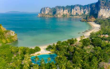 Eingebettet zwischen dramatischen Kalksteinfelsen, üppigem Dschungel und drei Traumstränden am Rande des Krabi Marine Nationalparks, erinnert das Rayavadee an ein verstecktes Fischerdorf. Die klassische Architektur, inspiriert von südthailändischen Traditionen, verschmilzt harmonisch mit der Natur und schafft einen Ort, an dem Luxus, Ruhe und Authentizität aufeinandertreffen.