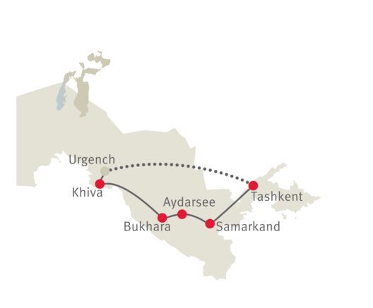 Um das kulturhistorische Herz Zentralasiens spinnen sich unzählige Legenden. Hier, entlang der sagenumwobenen Seidenstrasse, blühte der Handel. Eroberer aus unterschiedlichsten Kulturen hinterliessen Insignien ihrer Macht. Medresen, Moscheen und Mausoleen geben den Oasenstädten Samarkand, Bukhara und Khiva auch heute noch einen märchenhaften Glanz. In der Blütezeit war Usbekistan aber nicht nur ein Zentrum kompromissloser Macht, sondern auch des Intellekts, der Wissenschaft und Forschung. Orient pur finden Sie im bunten Treiben auf den Basaren: Kaskaden von Früchten und Gemüse, Datteln, Seide, Teppiche und flammend leuchtendes Gewürz bescheren ein Dauerfeuer für die Sinne. Hinter der schillernden Kulisse erleben Sie ein Land, das sich von der ehemaligen Sowjetunion emanzipiert und den Spagat zwischen Tradition und Moderne wagt. Herzliche, offene Menschen heissen die Besucher willkommen.