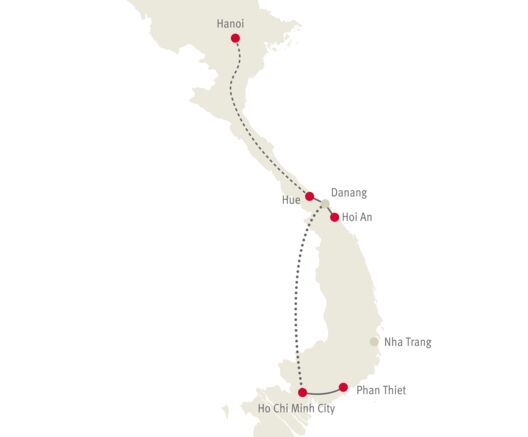 4000 Jahre Geschichte und starke kulturelle Einflüsse aus China, Indien und Frankreich haben dieses faszinierende Land geprägt. So bunt wie das kulturelle Mosaik sind auch die Landschaftsbilder: Leuchtend grüne Reisfelder begeistern ebenso wie zerklüftete Bergregionen, die fantastische Karstlandschaft der Halong-Bucht, das Gewirr von Wasserläufen im Mekong-Delta und nicht zuletzt die fast endlosen Traumstrände und unberührten Küsten. Reisen durch Vietnam sind reich an Entdeckungen und exotischen Eindrücken. Einfache Fischerdörfer, Seidenlaternen, Bergvölker mit farbenprächtigem Brauchtum und Kegelhüte in Reisfeldern wechseln sich ab mit kosmopolitischen Städten, prächtigen Pagoden und einer aufstrebenden Kunstszene. Acht Einträge im UNESCO-Welterbe zeugen von grossartiger Kulturleistung und Naturphänomenen. Das Land des «aufsteigenden Drachen» ist stark im Wandel begriffen. Im Spannungsfeld zwischen leidvoller Geschichte und einem ungebrochenen Glauben an eine bessere Zukunft ist die grosse Ruhe und Kraft der Menschen zu spüren. Eine Vietnam-Reise hinterlässt bleibende Eindrücke und unvergessliche Erinnerungen.