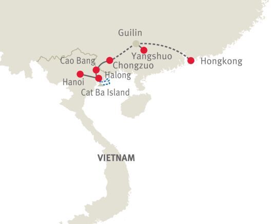 Die poetische Bezeichnung Drachenbucht für die spektakuläre Szenerie der Halong-Bucht steht sinnbildlich für diese Reise durch eines der grössten Karstfels-Gebiete der Welt. Eine Landschaft, zwei Welten, die unterschiedlicher nicht sein könnten.