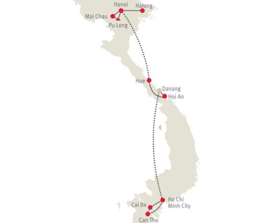 Entdeckungsreise durch ein Land zwischen Nostalgie und Wirtschaftswunder mit einer Prise Abenteuer. Von den sattgrünen Reisterrassen des Nordens bis in die fruchtbaren Ebenen des Mekongs im Süden. Erlebnisse pur!