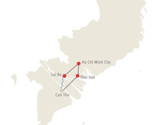 Spüren Sie den Pulsschlag des majestätischen Mekong auf die ursprünglichste Weise – zu Schiff im Mekong-Delta. Exotisch schöne Wasserlandschaften, Mangrovenwälder, Obstplantagen und endlose Reisfelder bis zum Horizont.