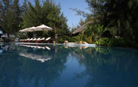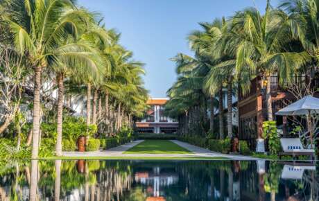 Eingebettet in eine schattenspendende Gartenlandschaft inmitten von Kiefernwäldern liegt dieses feine, in traditioneller vietnamesischer Architektur gehaltene Boutique-Resort. Ein Geheimtipp!